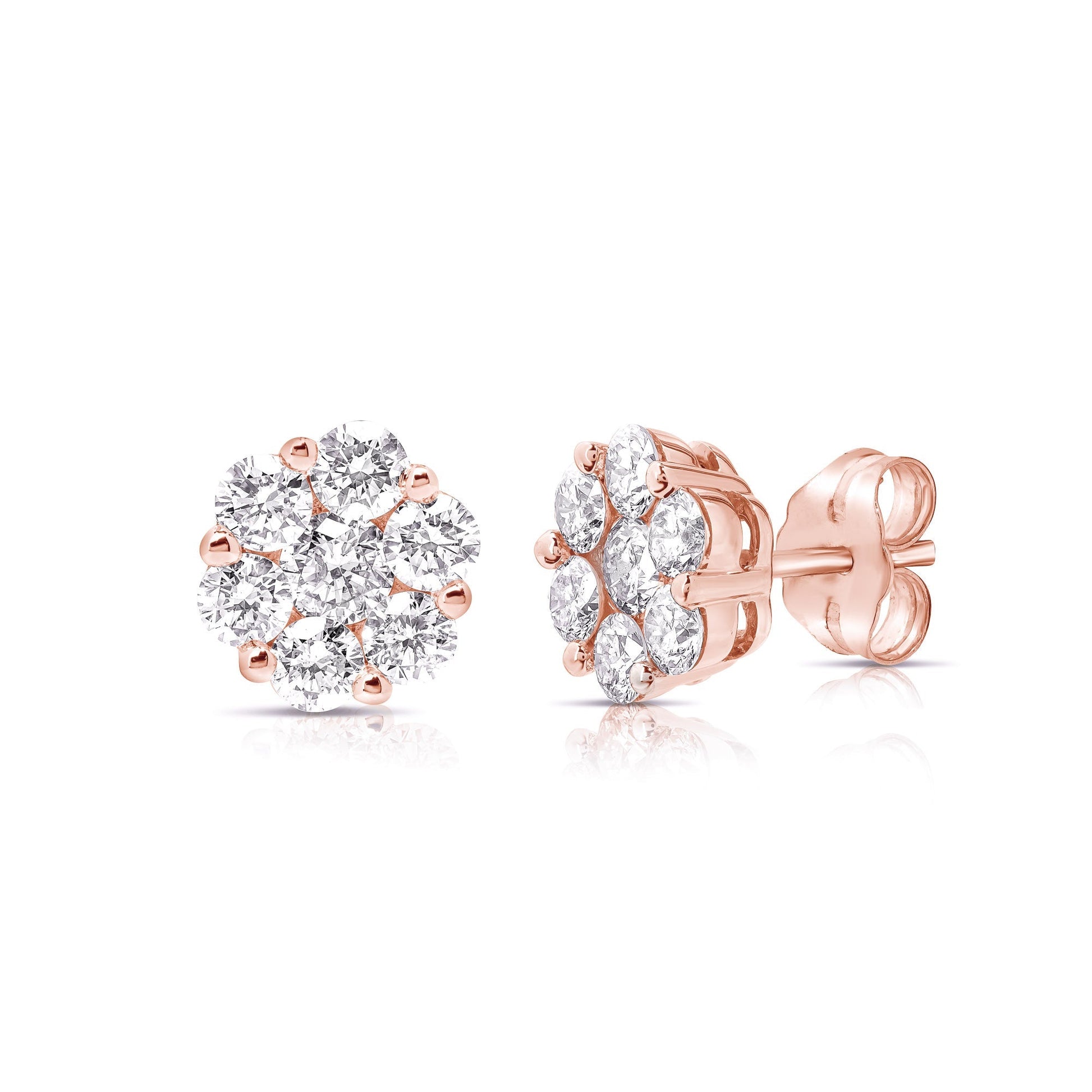 You'll come out smelling like a rose with this sweet flower cluster diamond stud earrings. Earrings feature round brilliant cut diamond prong set in 14K gold. Perfect for a day at the office or a night out on the town. Pair with our earring jackets to really turn heads!