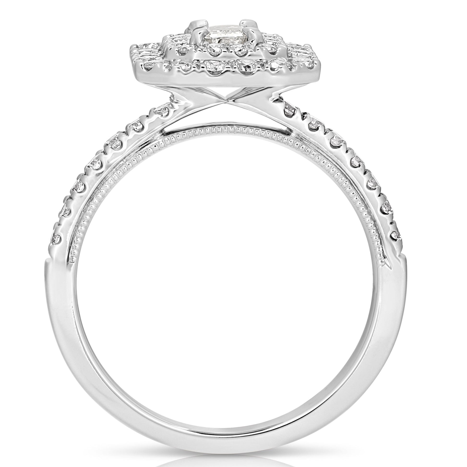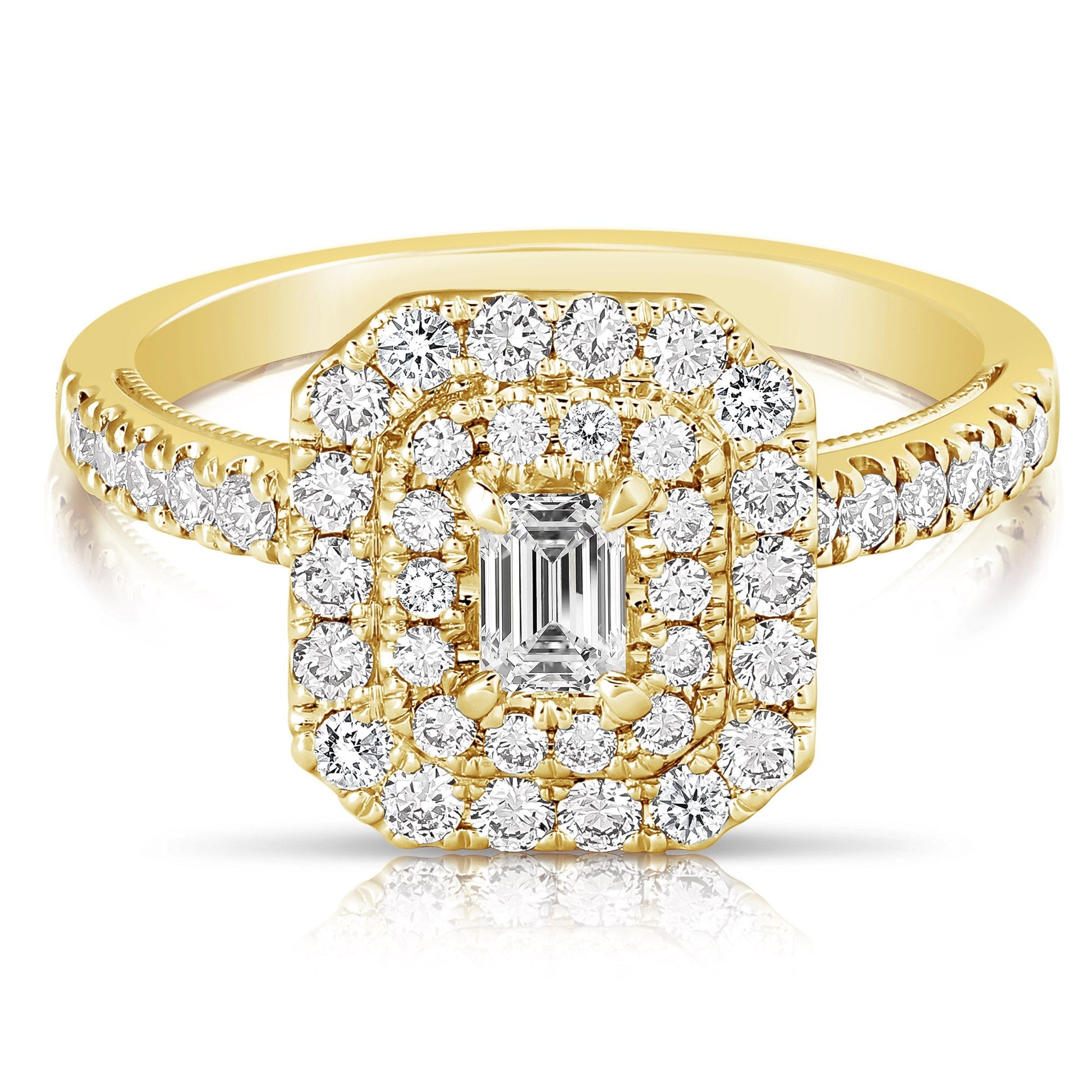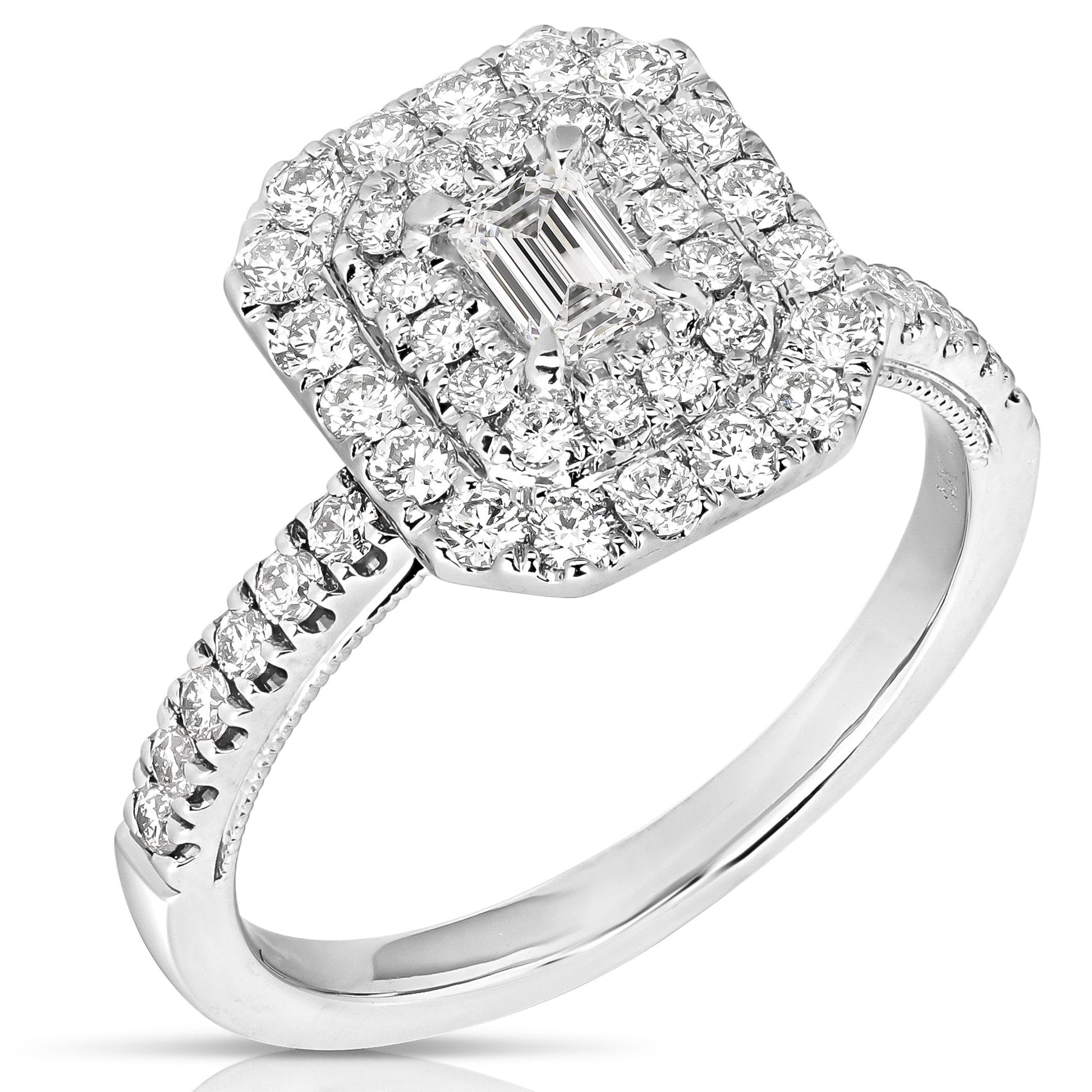 1 Ct Total Weight Double Halo Emerald Cut Engagement Ring
