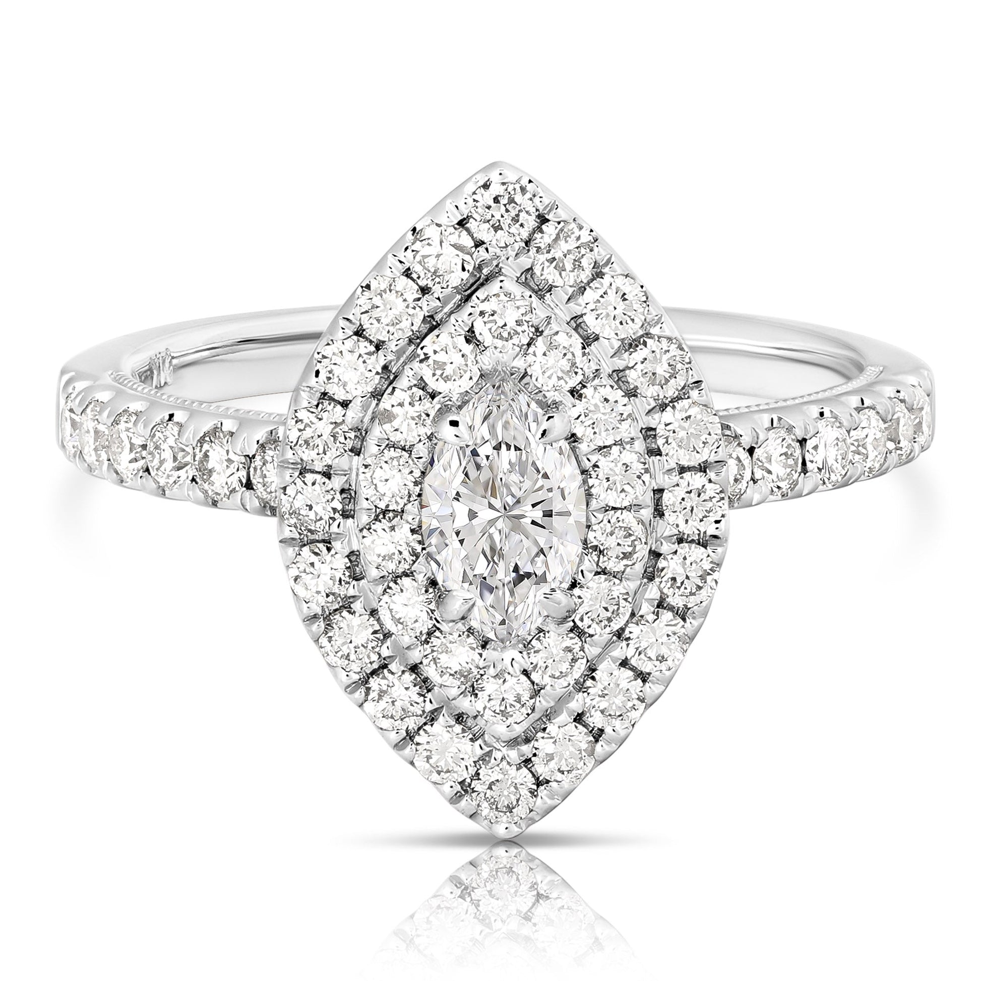 1 Ct Total Weight Double Halo Marquise Engagement Ring