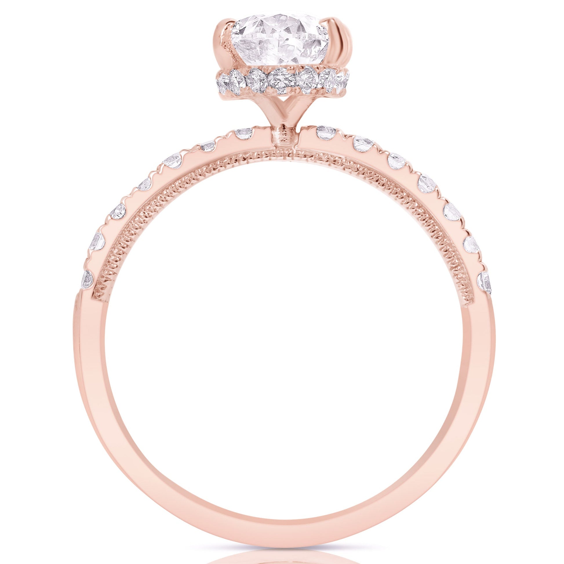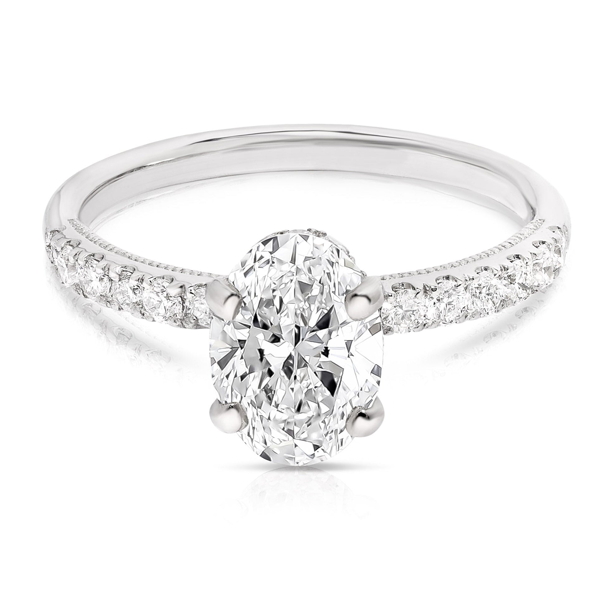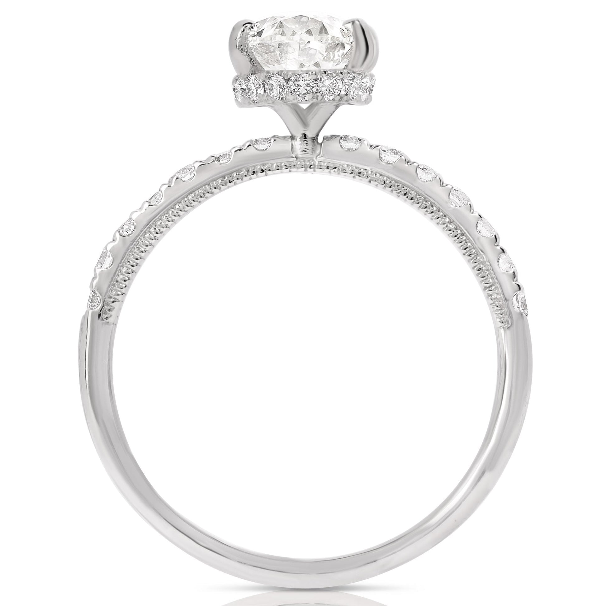2 Ct Total Weight Oval Lab Grown Hidden Halo Engagement Ring